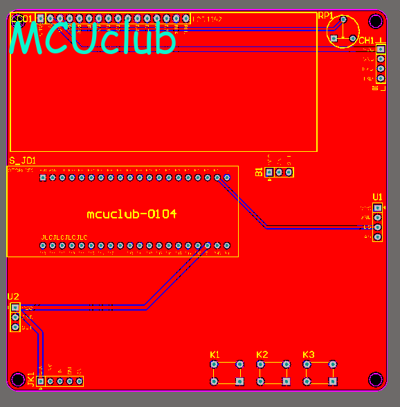 注意:PCB图中间有一个项目编号,隐藏在单片机底座下,插入单片机后不会看到。如果想截没有项目编号的PCB图,可在PCB源文件中点击删除。另外,如果想在实物PCB板上加自己的信息(比如日期、学号、姓名等),可联系客服。