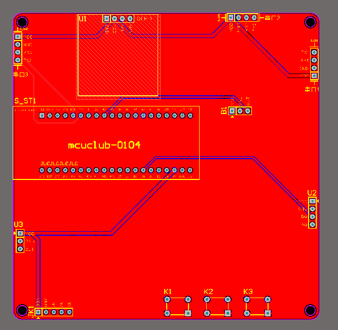 PCB图是由原理图导出,封装很大一部分都是作者自己绘制,不提供封装库,只提供连接好的源文件,可以直接在嘉立创进行打板。两层板,上下覆铜接地。