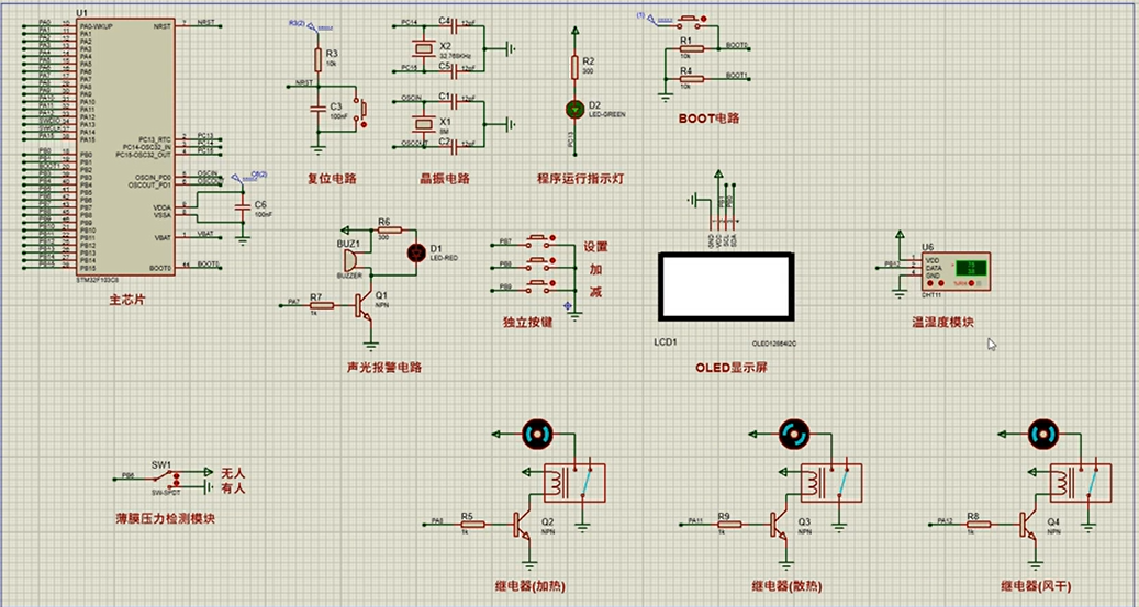 注意:部分实物元器件仿真中没有,仿真中会用其他工作原理相似的元件代替,这样可能导致实物程序和仿真程序不一样