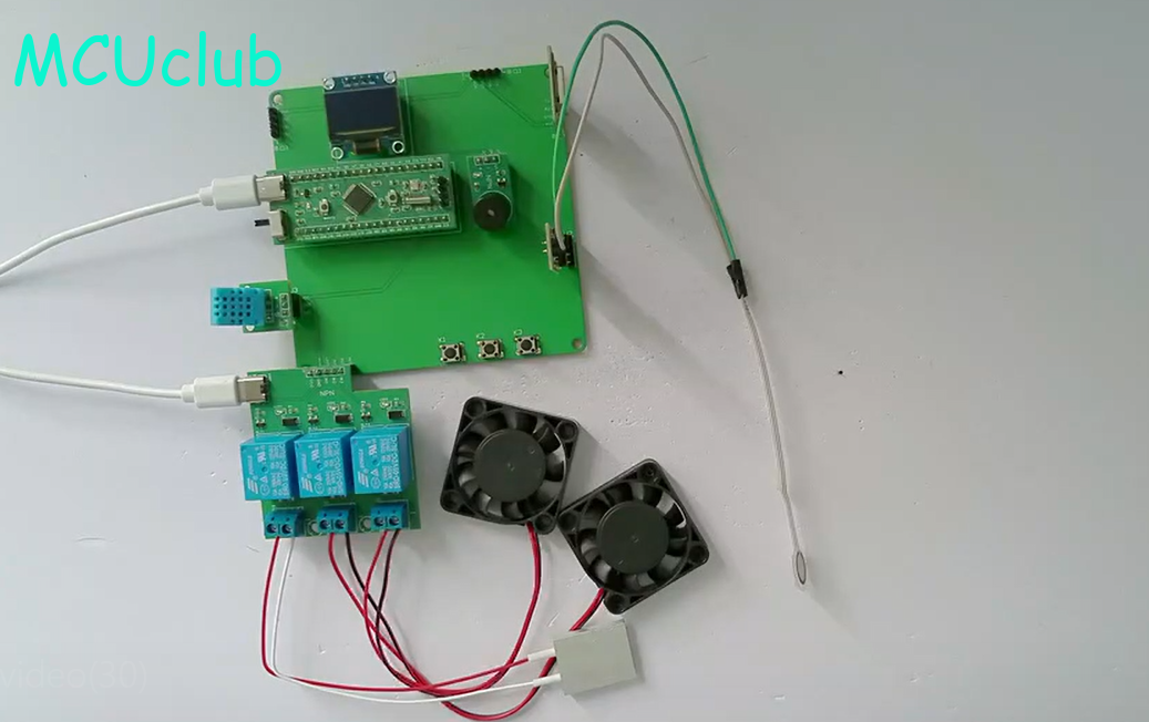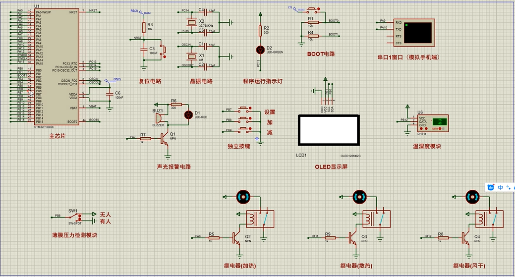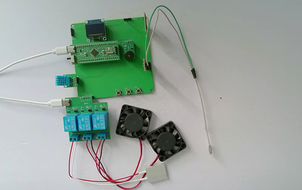 2、通过DHT11检测温湿度,当温度不在设定的范围内,则控制加热和散热,当湿度大于设置最大值(出现汗液),进行风干