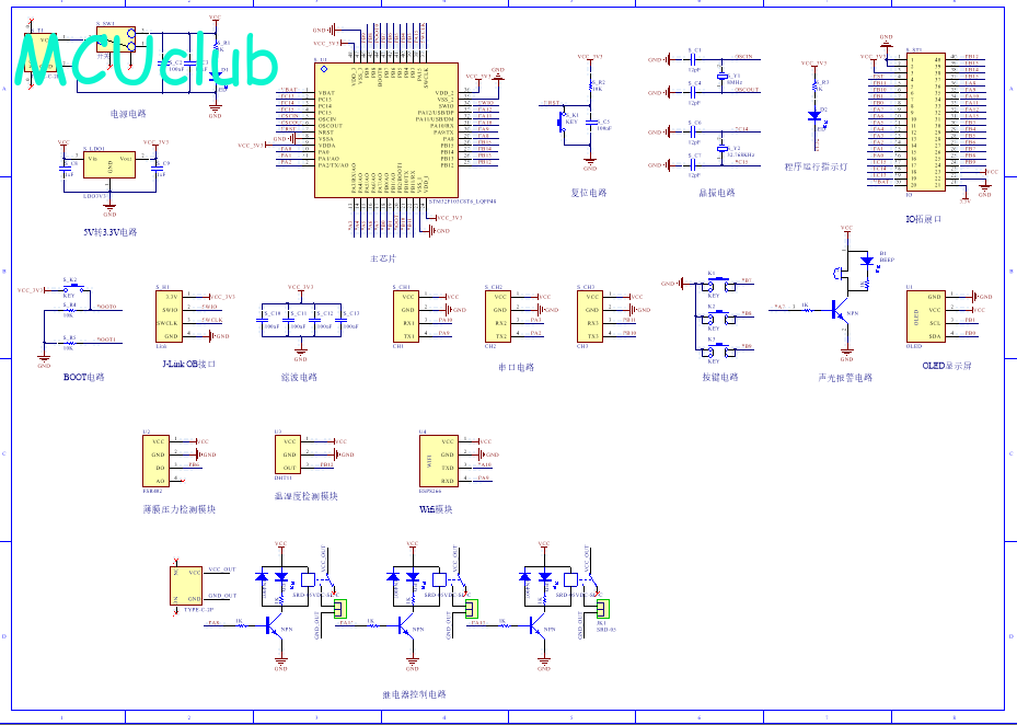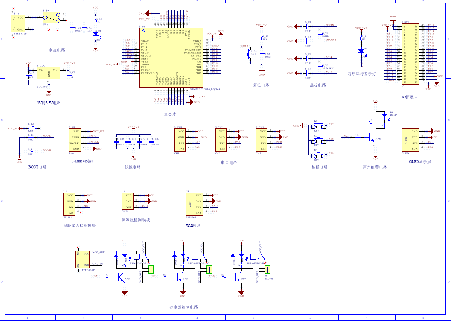 PCB图是由原理图导出,封装很大一部分都是作者自己绘制,不提供封装库,只提供连接好的源文件,可以直接在嘉立创进行打板。两层板,上下覆铜接地。