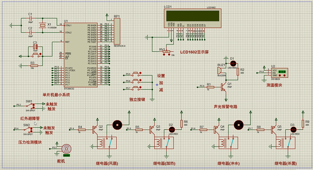 5、通过按键可设置各阈值,另外,可手动控制加热、冲水、杀菌