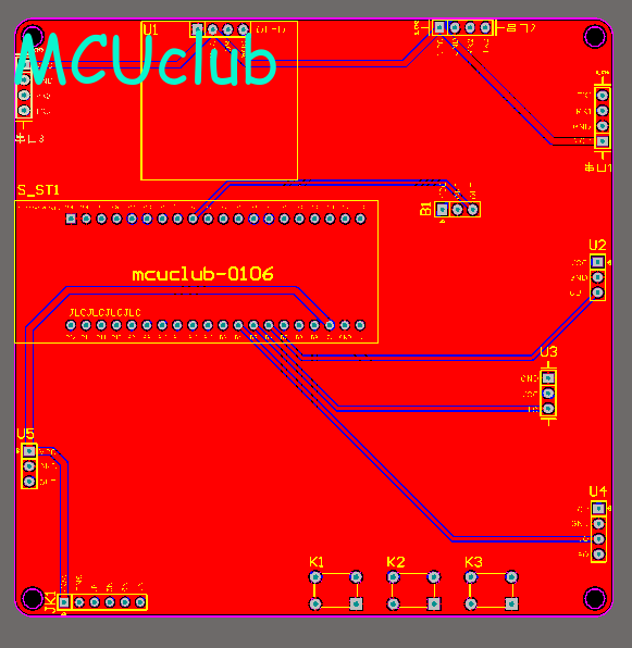 注意:PCB图中间有一个项目编号,隐藏在单片机底座下,插入单片机后不会看到。如果想截没有项目编号的PCB图,可在PCB源文件中点击删除。另外,如果想在实物PCB板上加自己的信息(比如日期、学号、姓名等),可联系客服。