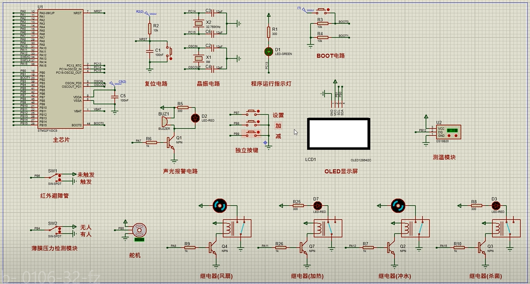 5、通过按键可设置各阈值,另外,可手动控制加热、冲水、杀菌