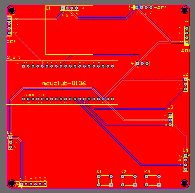 底板:底板在嘉立创进行打板,为绿色PCB板,两层板,厚度1.2,上下覆铜接地。元器件基本上为插针式,个别降压芯片会使用贴片式。
