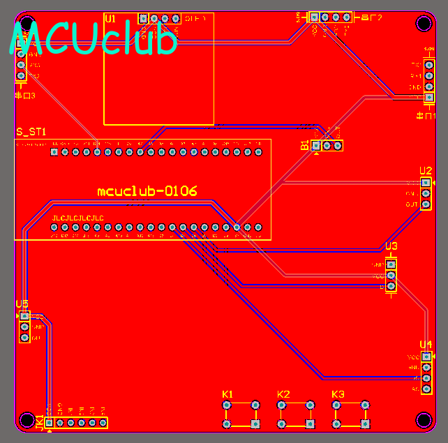 注意:PCB图中间有一个项目编号,隐藏在单片机底座下,插入单片机后不会看到。如果想截没有项目编号的PCB图,可在PCB源文件中点击删除。另外,如果想在实物PCB板上加自己的信息(比如日期、学号、姓名等),可联系客服。