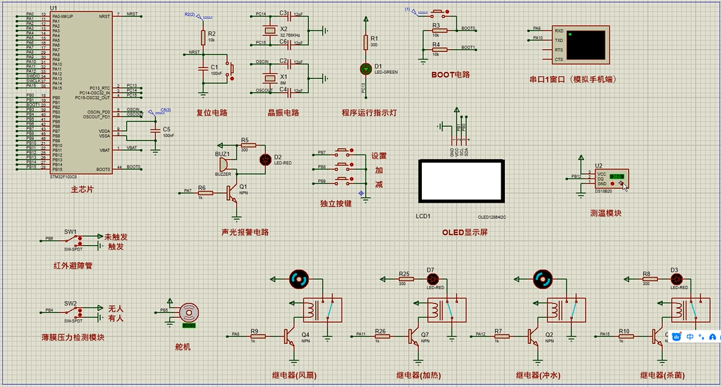 5、通过按键可设置各阈值,另外,可手动控制加热、冲水、杀菌