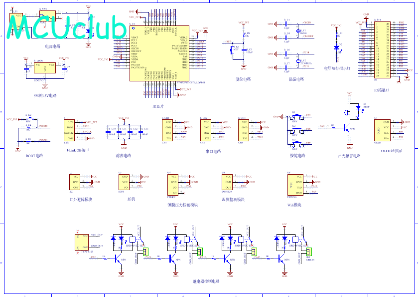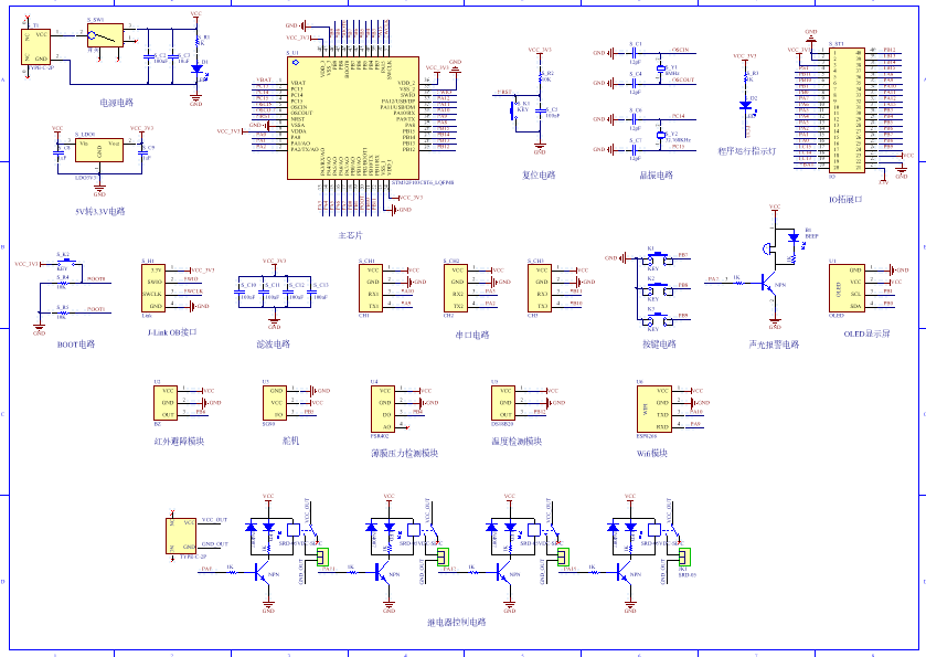 PCB图是由原理图导出,封装很大一部分都是作者自己绘制,不提供封装库,只提供连接好的源文件,可以直接在嘉立创进行打板。两层板,上下覆铜接地。