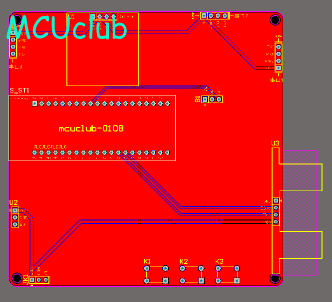 注意:PCB图中间有一个项目编号,隐藏在单片机底座下,插入单片机后不会看到。如果想截没有项目编号的PCB图,可在PCB源文件中点击删除。另外,如果想在实物PCB板上加自己的信息(比如日期、学号、姓名等),可联系客服。