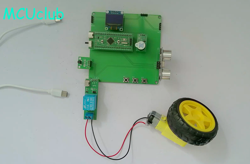3、通过按键设置距离阈值、手动启动和停止继电器(模拟车轮,只有在车轮转动,才会声光报警提醒)
