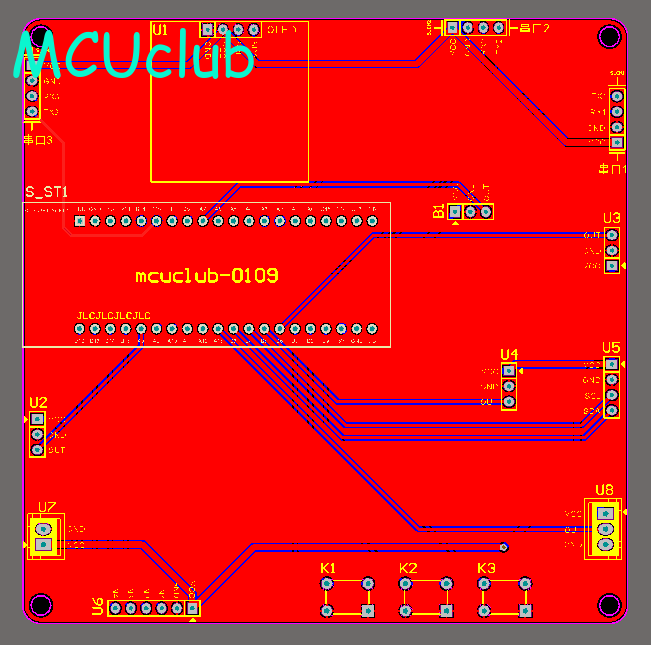 注意:PCB图中间有一个项目编号,隐藏在单片机底座下,插入单片机后不会看到。如果想截没有项目编号的PCB图,可在PCB源文件中点击删除。另外,如果想在实物PCB板上加自己的信息(比如日期、学号、姓名等),可联系客服。