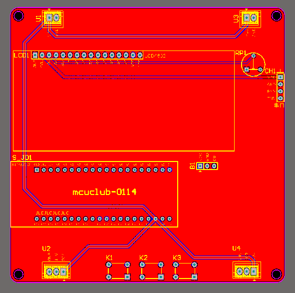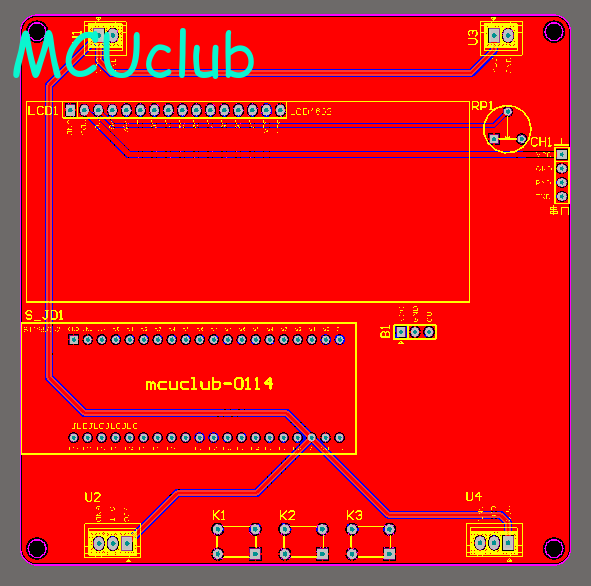 注意:PCB图中间有一个项目编号,隐藏在单片机底座下,插入单片机后不会看到。如果想截没有项目编号的PCB图,可在PCB源文件中点击删除。另外,如果想在实物PCB板上加自己的信息(比如日期、学号、姓名等),可联系客服。