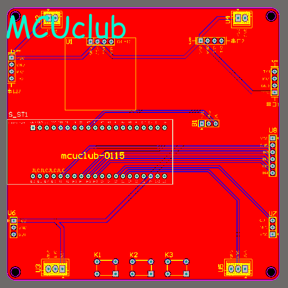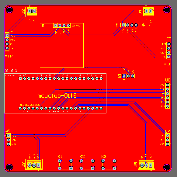 注意:PCB图中间有一个项目编号,隐藏在单片机底座下,插入单片机后不会看到。如果想截没有项目编号的PCB图,可在PCB源文件中点击删除。另外,如果想在实物PCB板上加自己的信息(比如日期、学号、姓名等),可联系客服。