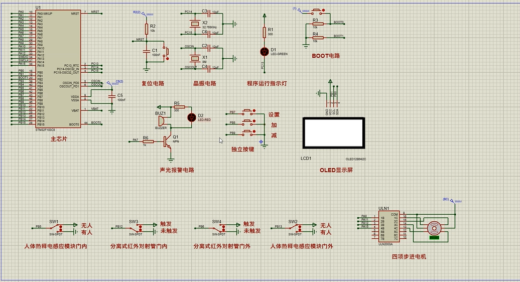 注意:部分实物元器件仿真中没有,仿真中会用其他工作原理相似的元件代替,这样可能导致实物程序和仿真程序不一样