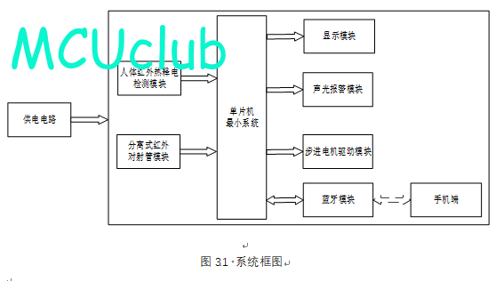 1、利用两个人体红外热释电检测内外部是否有人,有人则自动开门,5s后关门
