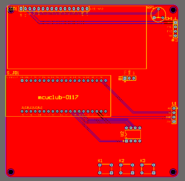 注意:PCB图中间有一个项目编号,隐藏在单片机底座下,插入单片机后不会看到。如果想截没有项目编号的PCB图,可在PCB源文件中点击删除。另外,如果想在实物PCB板上加自己的信息(比如日期、学号、姓名等),可联系客服。