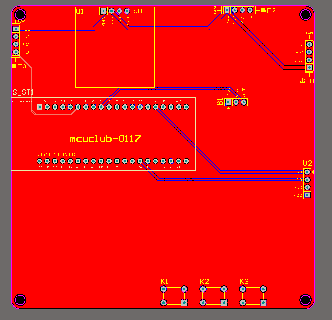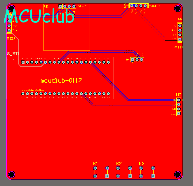 注意:PCB图中间有一个项目编号,隐藏在单片机底座下,插入单片机后不会看到。如果想截没有项目编号的PCB图,可在PCB源文件中点击删除。另外,如果想在实物PCB板上加自己的信息(比如日期、学号、姓名等),可联系客服。