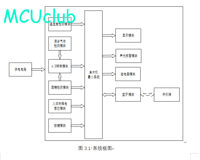 2、通过MQ-3检测酒精浓度,若酒精浓度大于设置最大值,则声光报警