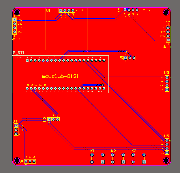 注意:PCB图中间有一个项目编号,隐藏在单片机底座下,插入单片机后不会看到。如果想截没有项目编号的PCB图,可在PCB源文件中点击删除。另外,如果想在实物PCB板上加自己的信息(比如日期、学号、姓名等),可联系客服。