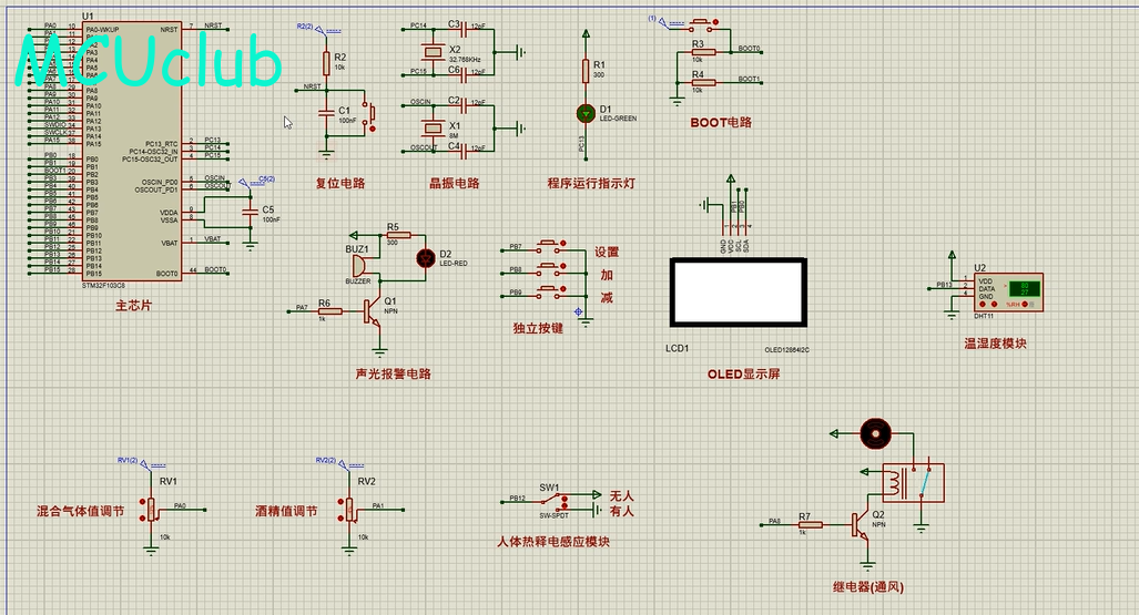 注意:部分实物元器件仿真中没有,仿真中会用其他工作原理相似的元件代替,这样可能导致实物程序和仿真程序不一样