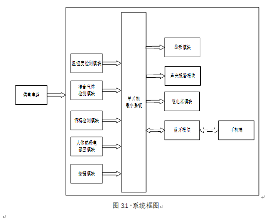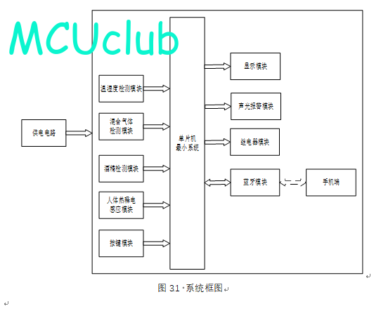 2、通过MQ-3检测酒精浓度,若酒精浓度大于设置最大值,则声光报警