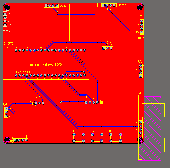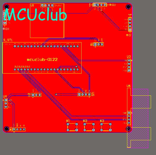 注意:PCB图中间有一个项目编号,隐藏在单片机底座下,插入单片机后不会看到。如果想截没有项目编号的PCB图,可在PCB源文件中点击删除。另外,如果想在实物PCB板上加自己的信息(比如日期、学号、姓名等),可联系客服。