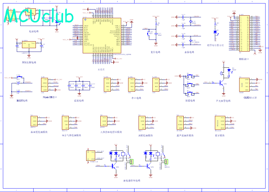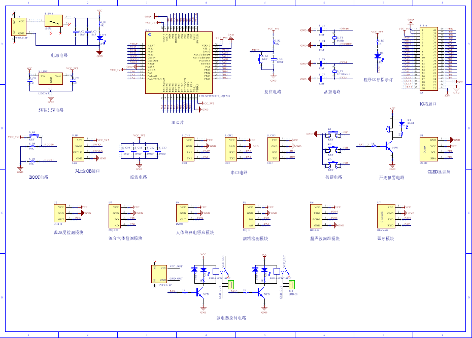 PCB图是由原理图导出,封装很大一部分都是作者自己绘制,不提供封装库,只提供连接好的源文件,可以直接在嘉立创进行打板。两层板,上下覆铜接地。