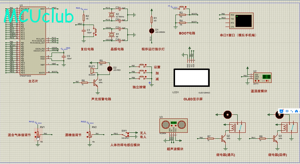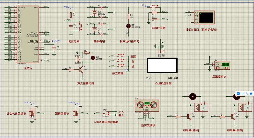 注意:部分实物元器件仿真中没有,仿真中会用其他工作原理相似的元件代替,这样可能导致实物程序和仿真程序不一样