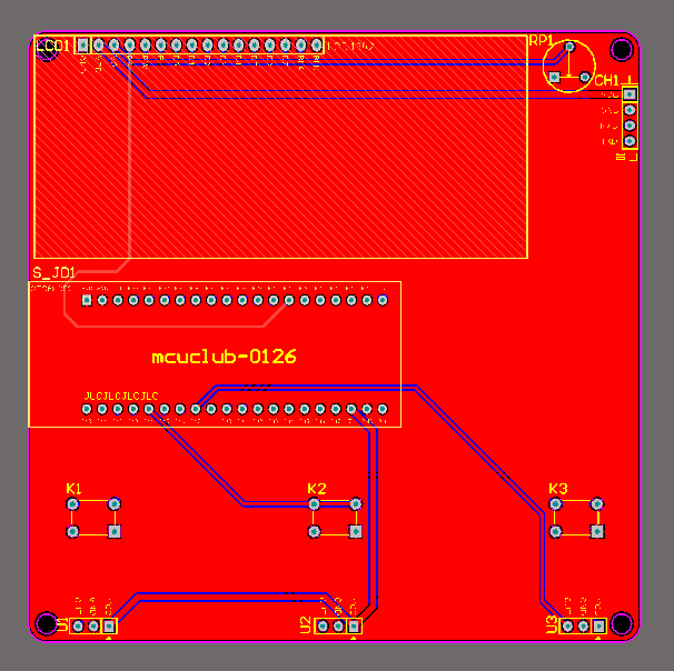 注意:PCB图中间有一个项目编号,隐藏在单片机底座下,插入单片机后不会看到。如果想截没有项目编号的PCB图,可在PCB源文件中点击删除。另外,如果想在实物PCB板上加自己的信息(比如日期、学号、姓名等),可联系客服。