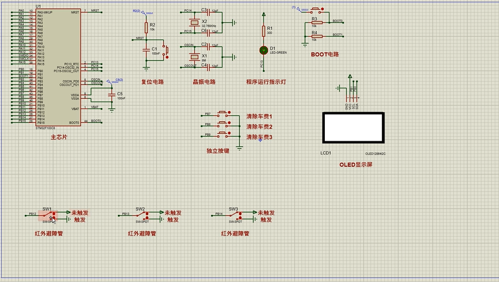 注意:部分实物元器件仿真中没有,仿真中会用其他工作原理相似的元件代替,这样可能导致实物程序和仿真程序不一样