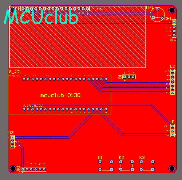 注意:PCB图中间有一个项目编号,隐藏在单片机底座下,插入单片机后不会看到。如果想截没有项目编号的PCB图,可在PCB源文件中点击删除。另外,如果想在实物PCB板上加自己的信息(比如日期、学号、姓名等),可联系客服。