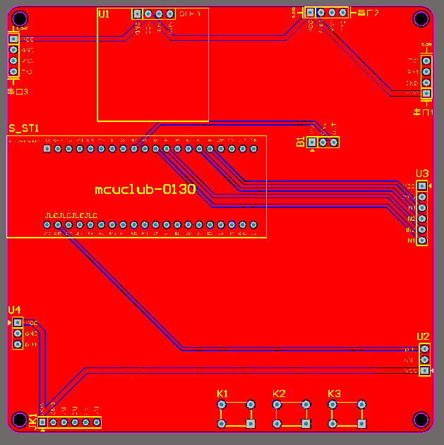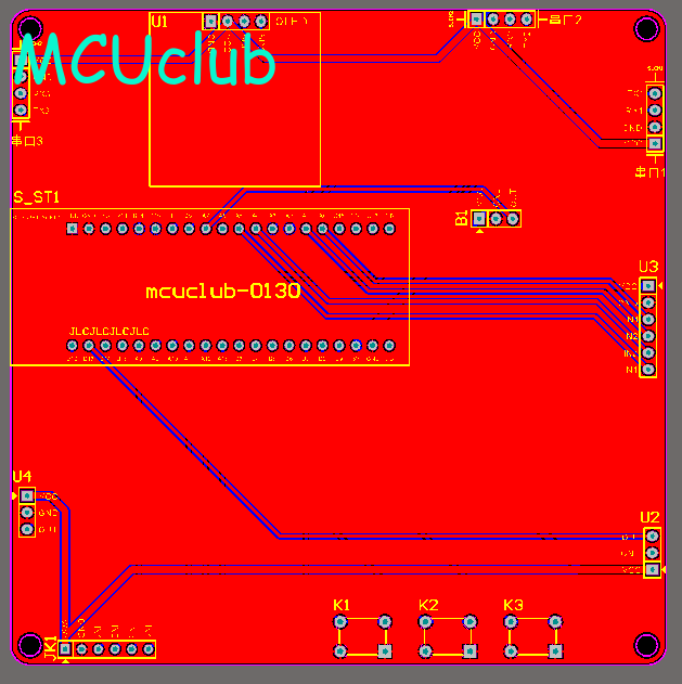注意:PCB图中间有一个项目编号,隐藏在单片机底座下,插入单片机后不会看到。如果想截没有项目编号的PCB图,可在PCB源文件中点击删除。另外,如果想在实物PCB板上加自己的信息(比如日期、学号、姓名等),可联系客服。