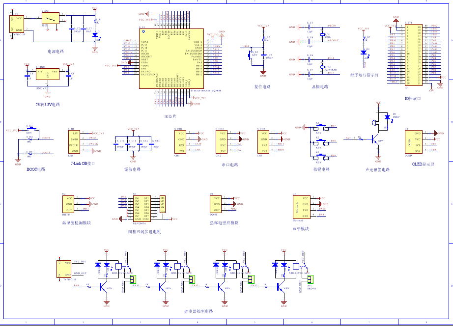 PCB图是由原理图导出,封装很大一部分都是作者自己绘制,不提供封装库,只提供连接好的源文件,可以直接在嘉立创进行打板。两层板,上下覆铜接地。