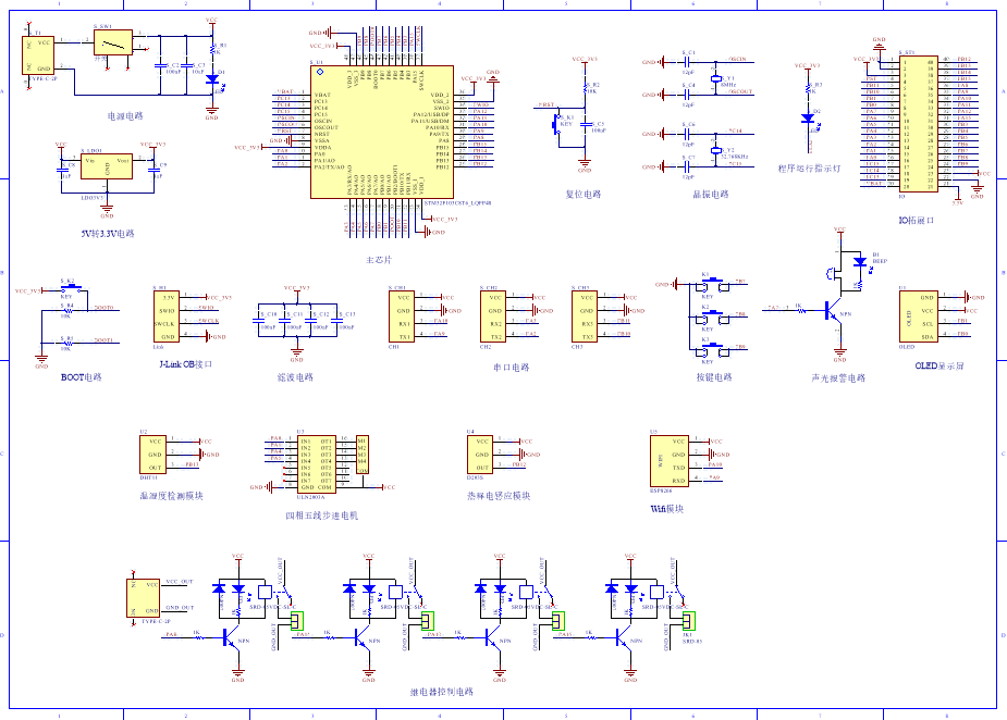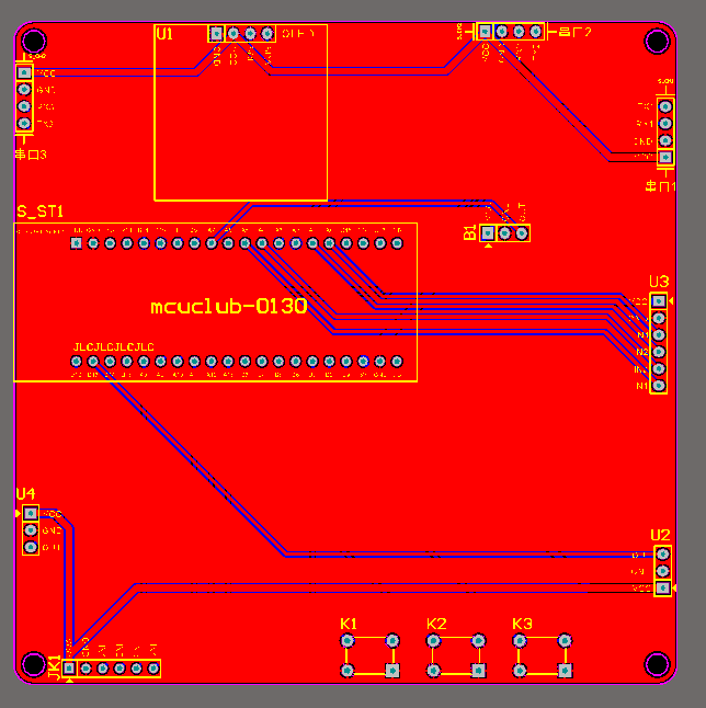 PCB图是由原理图导出,封装很大一部分都是作者自己绘制,不提供封装库,只提供连接好的源文件,可以直接在嘉立创进行打板。两层板,上下覆铜接地。