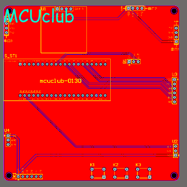 注意:PCB图中间有一个项目编号,隐藏在单片机底座下,插入单片机后不会看到。如果想截没有项目编号的PCB图,可在PCB源文件中点击删除。另外,如果想在实物PCB板上加自己的信息(比如日期、学号、姓名等),可联系客服。