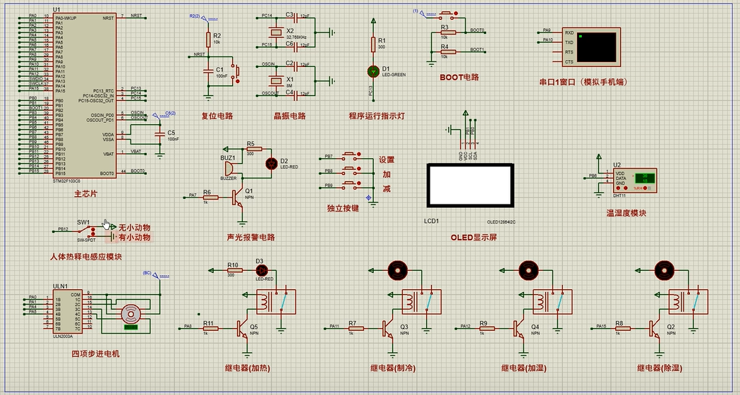 注意:部分实物元器件仿真中没有,仿真中会用其他工作原理相似的元件代替,这样可能导致实物程序和仿真程序不一样