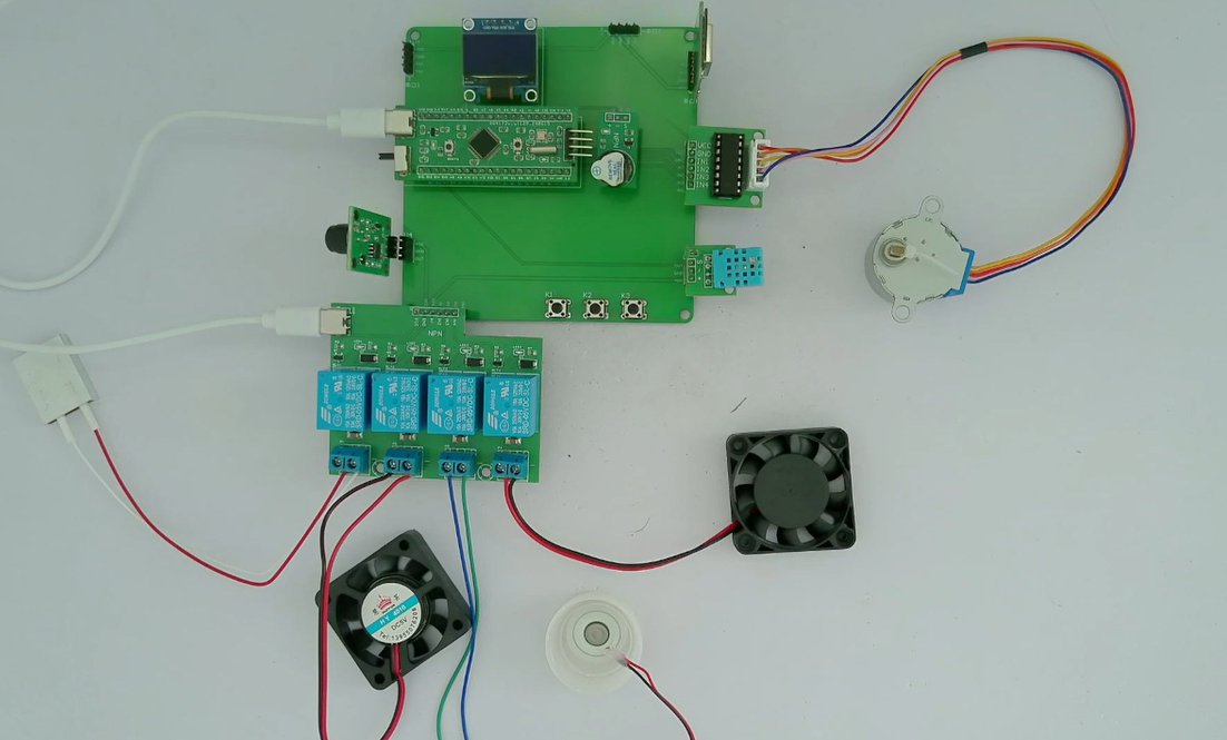 1、通过DHT11检测温湿度,当温湿度值不在设置的上下限值之间,进行加热制冷加湿除湿