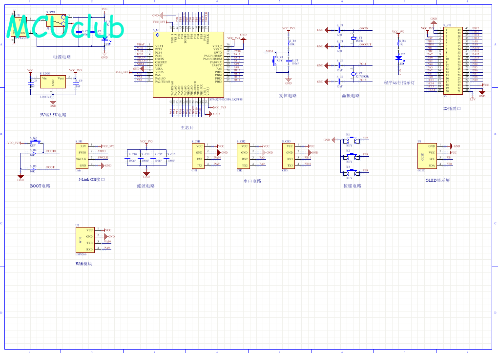 PCB图是由原理图导出,封装很大一部分都是作者自己绘制,不提供封装库,只提供连接好的源文件,可以直接在嘉立创进行打板。两层板,上下覆铜接地。
