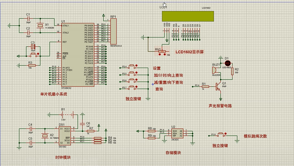 4、通过AT24C02可将每天跳绳的总次数进行保存(存储年月日和跳绳次数),通过按键可进行查看