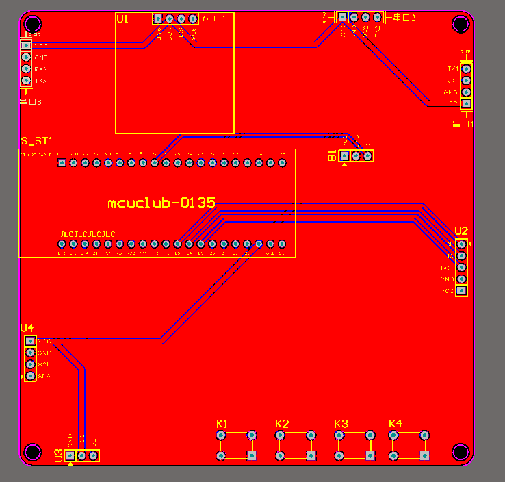 PCB图是由原理图导出,封装很大一部分都是作者自己绘制,不提供封装库,只提供连接好的源文件,可以直接在嘉立创进行打板。两层板,上下覆铜接地。