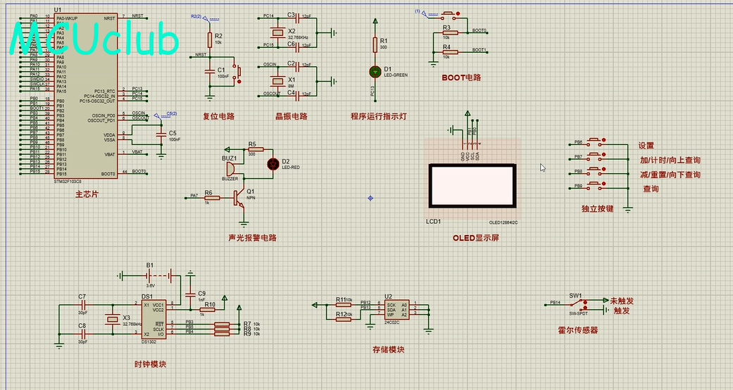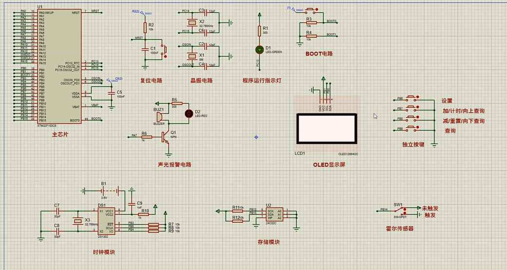 注意:部分实物元器件仿真中没有,仿真中会用其他工作原理相似的元件代替,这样可能导致实物程序和仿真程序不一样