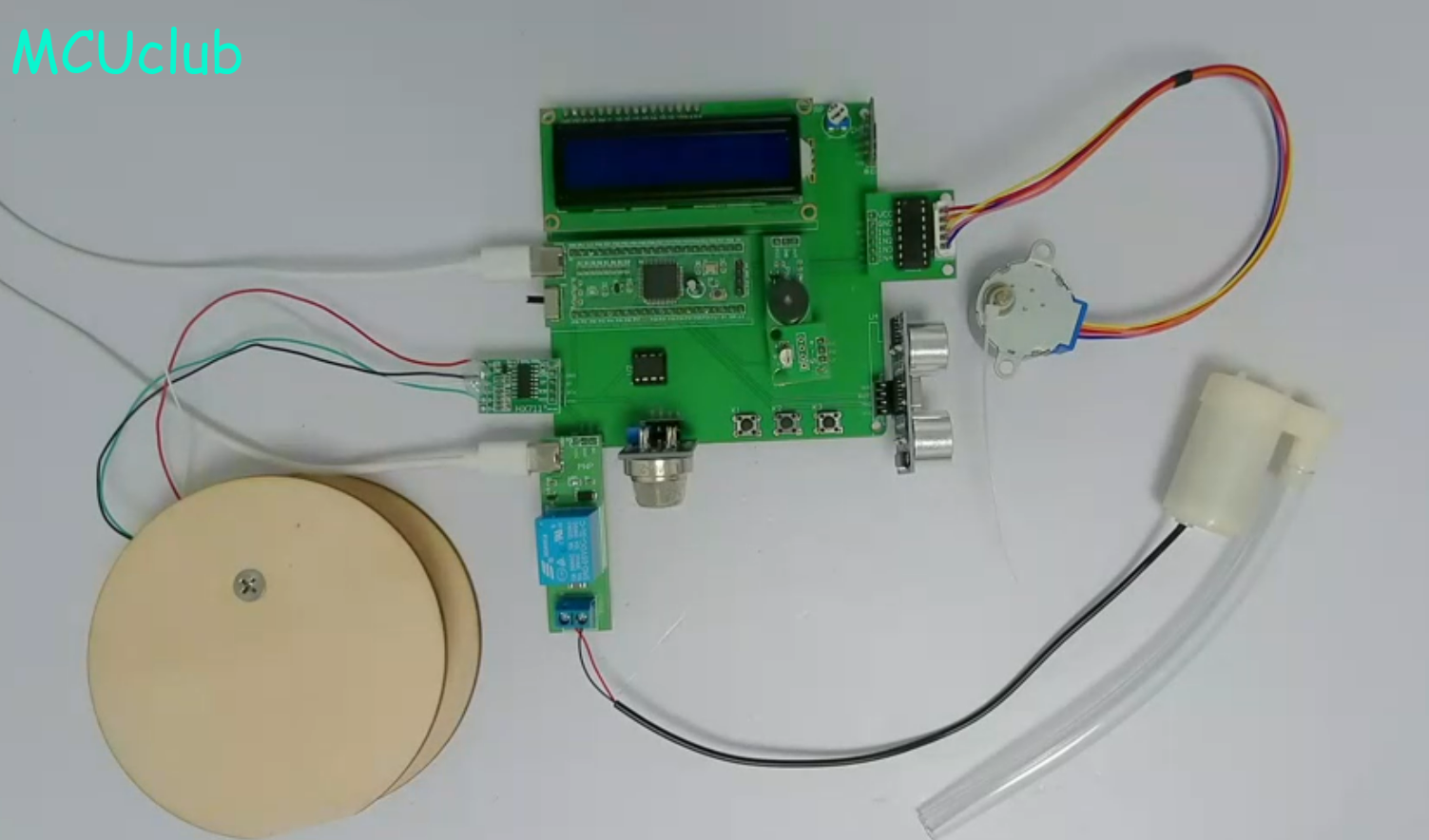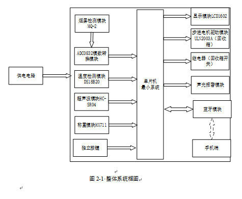 1、通过MQ-2检测回收箱内烟雾值,当烟雾值大于设置最大值,进行声光报警,开启水泵