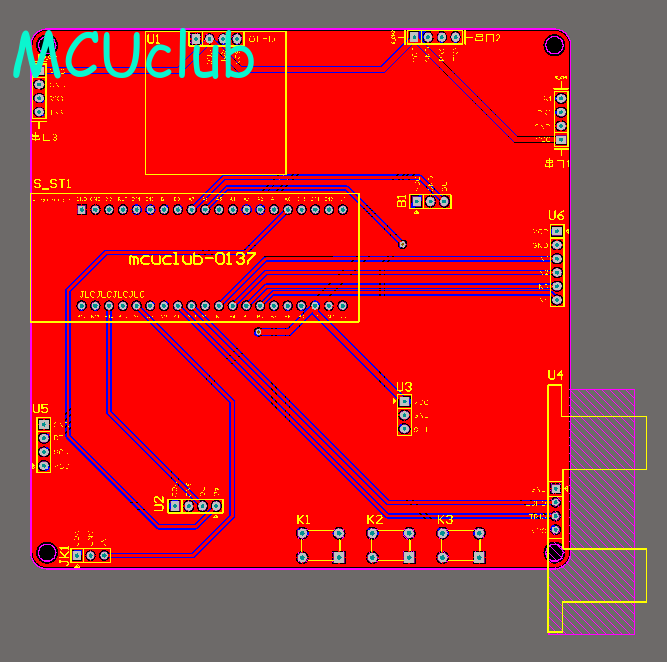 注意:PCB图中间有一个项目编号,隐藏在单片机底座下,插入单片机后不会看到。如果想截没有项目编号的PCB图,可在PCB源文件中点击删除。另外,如果想在实物PCB板上加自己的信息(比如日期、学号、姓名等),可联系客服。