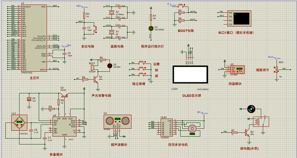 注意:部分实物元器件仿真中没有,仿真中会用其他工作原理相似的元件代替,这样可能导致实物程序和仿真程序不一样