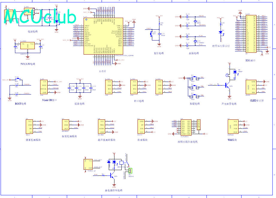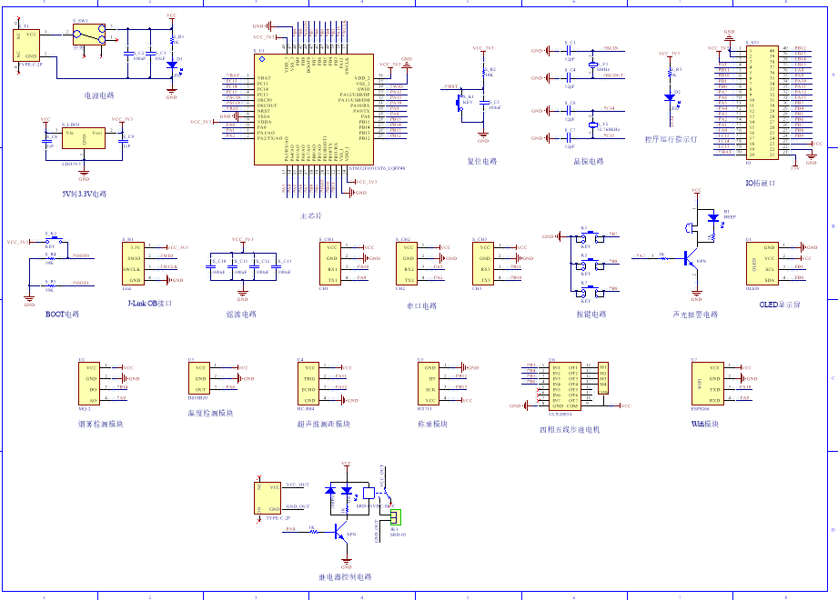 PCB图是由原理图导出,封装很大一部分都是作者自己绘制,不提供封装库,只提供连接好的源文件,可以直接在嘉立创进行打板。两层板,上下覆铜接地。
