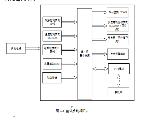 1、通过MQ-2检测回收箱内烟雾值,当烟雾值大于设置最大值,进行声光报警,开启水泵