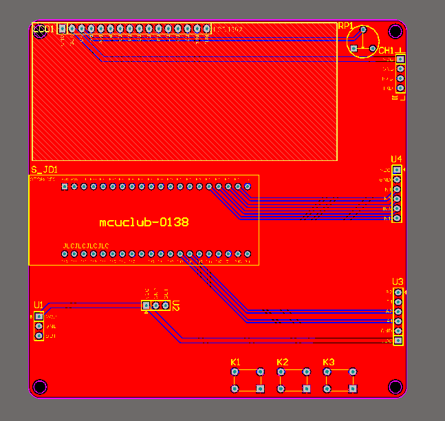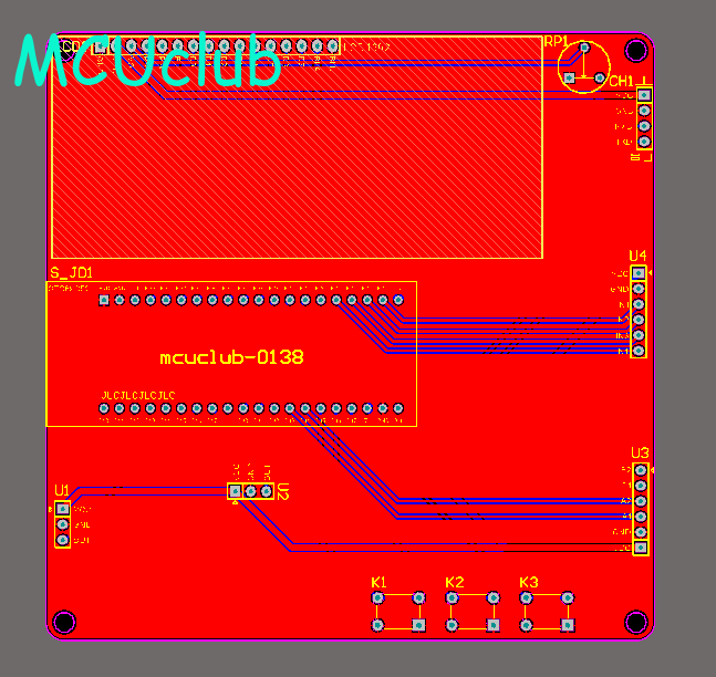 PCB图是由原理图导出,封装很大一部分都是作者自己绘制,不提供封装库,只提供连接好的源文件,可以直接在嘉立创进行打板。两层板,上下覆铜接地。