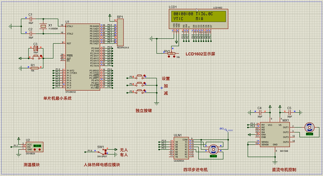 注意:部分实物元器件仿真中没有,仿真中会用其他工作原理相似的元件代替,这样可能导致实物程序和仿真程序不一样