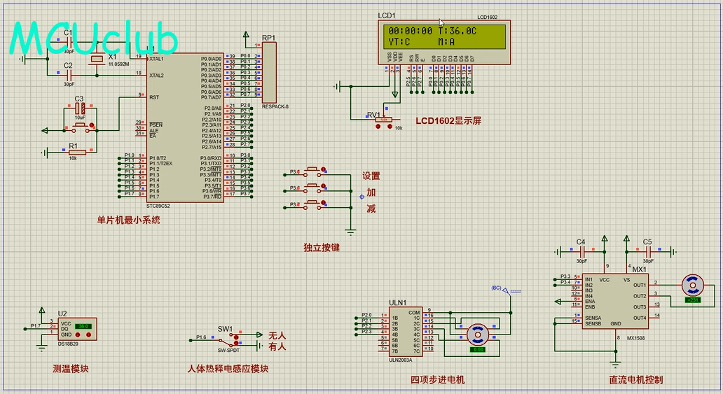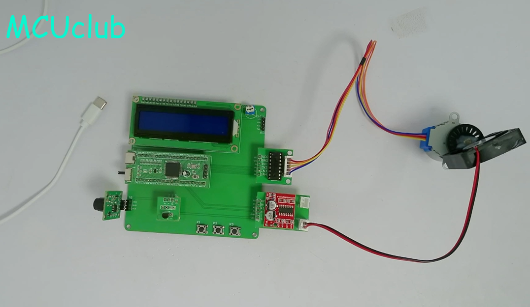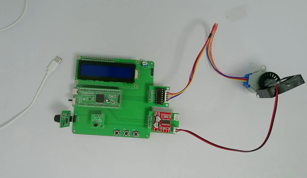 4、通过步进电机带动风扇,可模拟自动摇头,按键可以控制启停