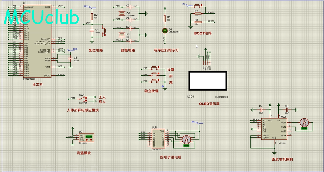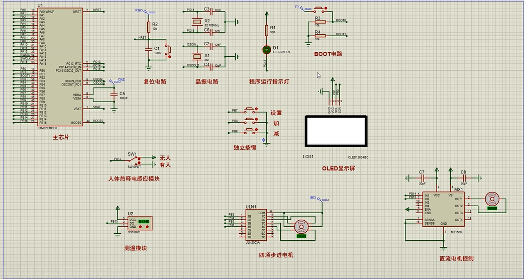 注意:部分实物元器件仿真中没有,仿真中会用其他工作原理相似的元件代替,这样可能导致实物程序和仿真程序不一样